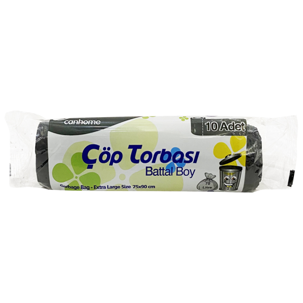 Canhome 140 gr Battal Boy Siyah Çöp Torbası 75x90cm 10 Adet – 1 Paket